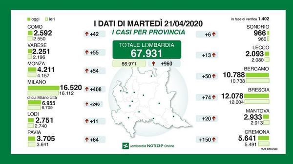 Cronaca I dati diffusi ieri dalla Regione. Altri 203 decessi si sono aggiunti nelle ultime 24 ore. I morti ora sono 12.579 5 anni fa