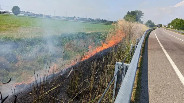 Nel fine settimana una rotoballa isolata ha preso fuoco vicino a un bosco a Guardamiglio