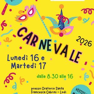 Oggi e domani l'oratoria di Santa Francesca Cabrini ospita la festa di Carnevale con pranzo al sacco e tanto divertimento dalle ore 8,30 alle 17. Vestiti in maschera.
