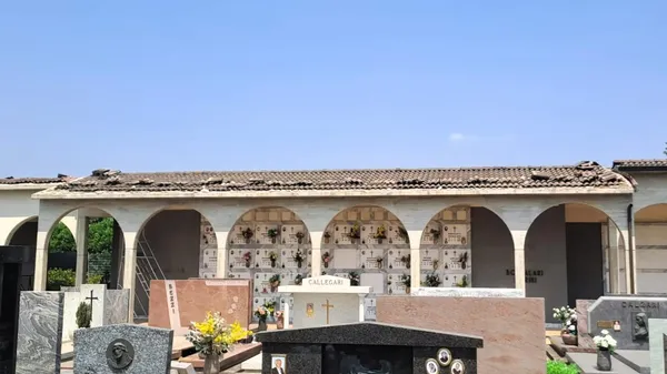 RAZZIA I ladri, arrivati con un camion, hanno fatto man bassa di grondaie, scossaline e tubi da diversi blocchi di loculi