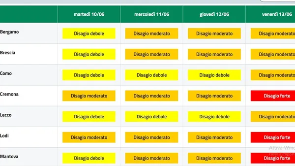 INDICE HUMIDEX Le previsioni climatiche di Arpa Lombardia indicano giornate di afa in arrivo nella bassa pianura