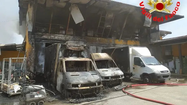 FINE SETTIMANA DI FUOCO Seicento metri quadri di azienda devastati, tre furgoni distrutti
