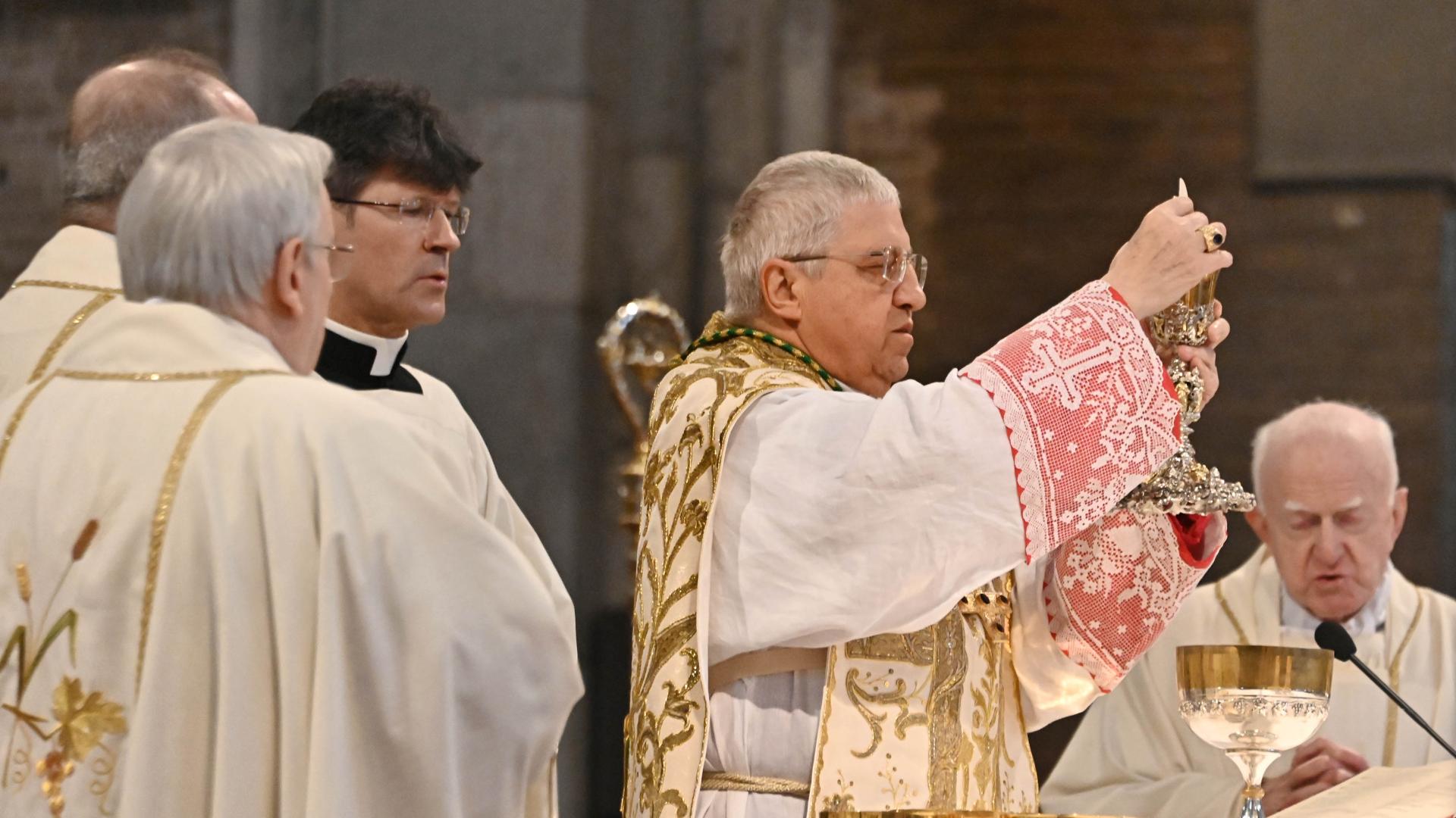 Il rito, in un duomo gremito, con fedeli, sacerdoti, cantori, autorità, è iniziato con la processione verso l’altare, chiusa da monsignor Maurizio Malvestiti. Prima di lui i seminaristi e i tanti sacerdoti impegnati nella diocesi di Lodi, tra gli altri il vescovo emerito monsignor Giuseppe Merisi, il vicario generale monsignor Bassiano Uggè, il parroco di Codogno monsignor Gabriele Bernardelli, il parroco di Sant’Angelo monsignor Enzo Raimondi e il parroco di Casalpusterlengo don Pierluigi Leva.