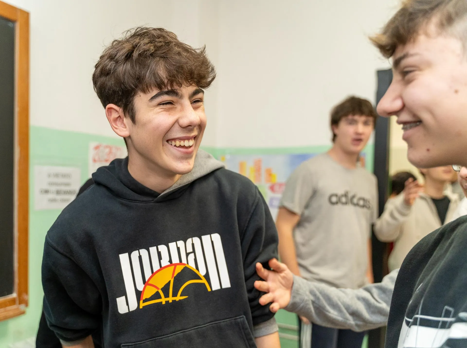 Le ragazze abbracciano Kelly. Quando entra il prof di religione Fabrizio Cassinari i maschi lo accolgono come fosse anche lui un divo. E quando gli dicono che il fotografo vuole riportarli in palestra per un nuovo scatto di gruppo tra reti e canestri, lo sa anche lui che l’idea è una trovata in una mattina un po’ speciale che li fa sentire protagonisti. E se lo meritano.