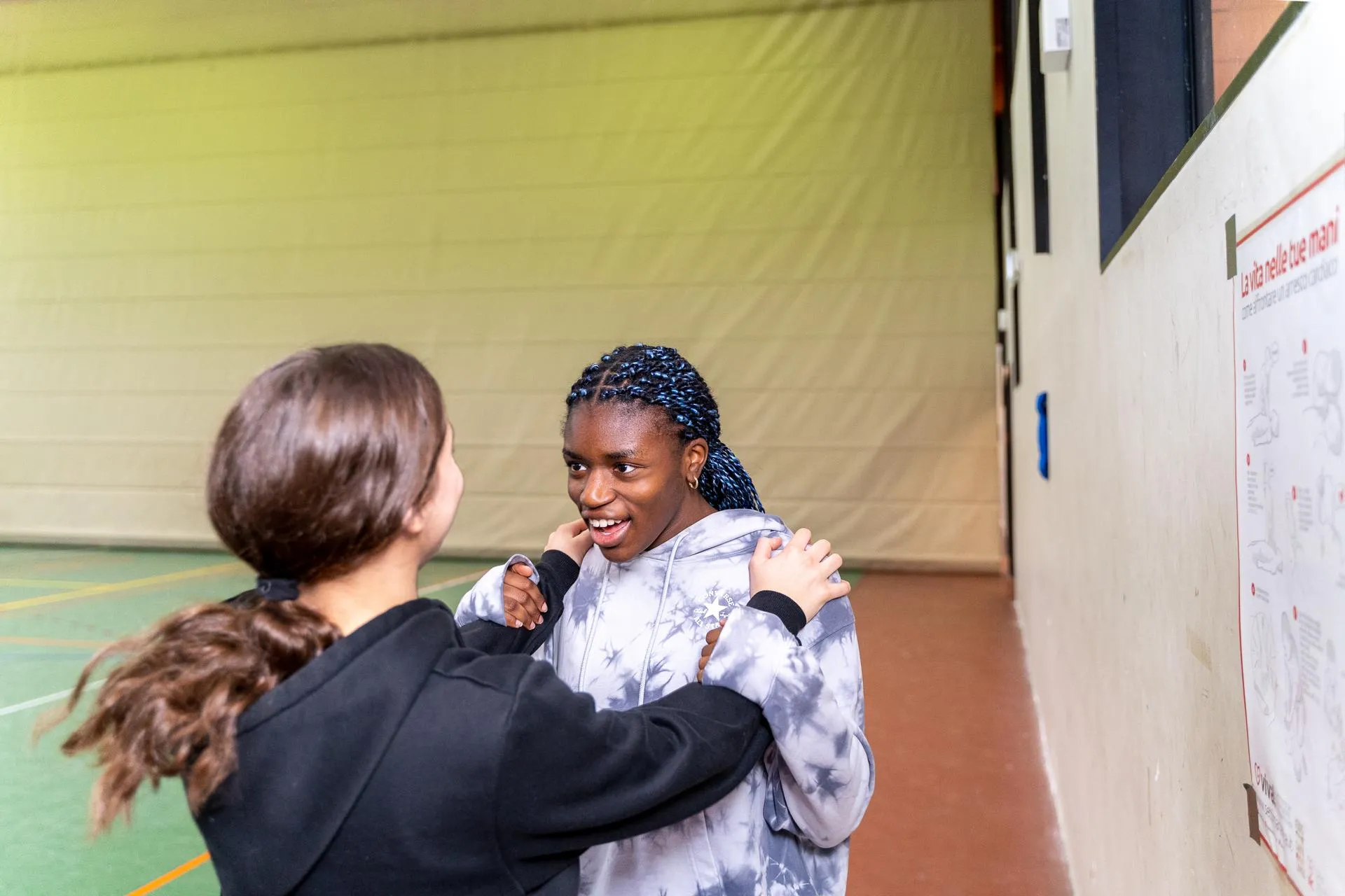 L’abbiamo incontrata fuori dalla pista e dai riflettori, nella sua classe, la II LB, a prendersi gli abbracci della compagna vidardese Sara Todaro, che, invece, è specializzata in ginnastica acrobatica come la compagna Niki Rossi ed è iscritta alla Ass Achena 2. Sono una lo specchio dell’altra. «Al matrimonio ti vesto e ti trucco io», dice Sara a Kelly, intenzionata a sposarsi e avere dei figli quando sarà ora. Improvvisano ruote e altre magie a corpo libero, si lanciano la palla. «Quando corro sono tranquilla - dice Kelly -, l’ansia cresce quando arrivo ai blocchi, ma poi si trasforma in carica. Non sono mai sorpresa dei risultati, so di avere di fronte obiettivi che posso raggiungere». I suoi compagni della Cus pro Patria Milano la prendono in giro “Ah la campionessa del mondo”, ma scherzano e sono solidali. I compagni di classe? «Mi prendono in giro molto di più», ride, ma lo fanno per scherzare.