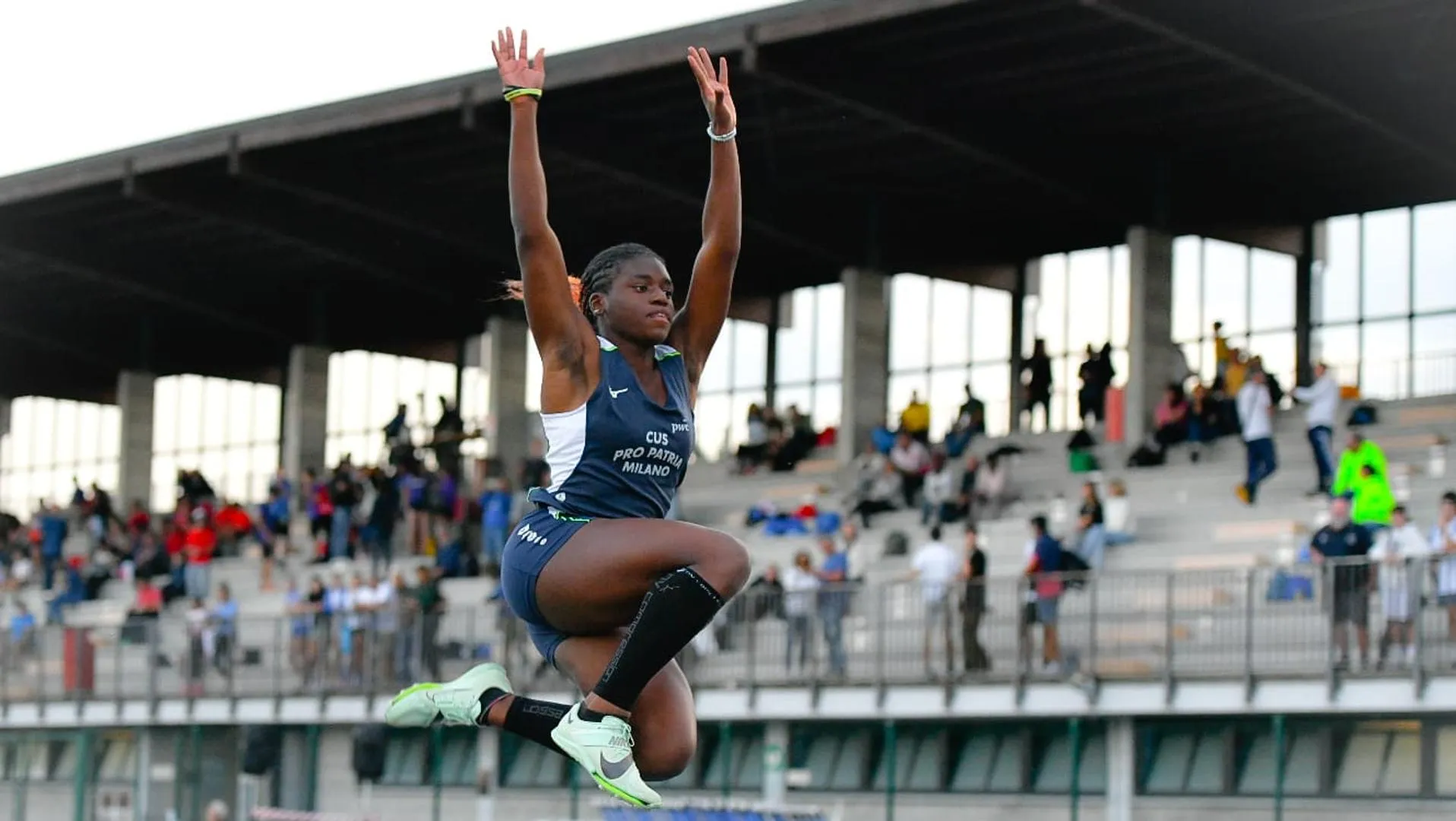 L’indimenticabile 2025 di Kelly Ann Doualla finisce con l’ennesima vittoria. La santangiolina, campionessa europea Under 20 e primatista europea Under 18 dei 100 metri, si impone a Modena nel salto in lungo della finale di Serie “Oro” (la finale scudetto) dei Societari Allieve (di fatto i campionati italiani giovanili a squadre): 6.03 la misura vincente regalando parecchi centimetri sull’asse di battuta al momento dello stacco, per un successo molto meno netto di altre occasioni. Il Cus Pro Patria Milano, la sua società, chiude quinto: anche con Kelly schierata nello sprint lo scudetto non sarebbe comunque arrivato.